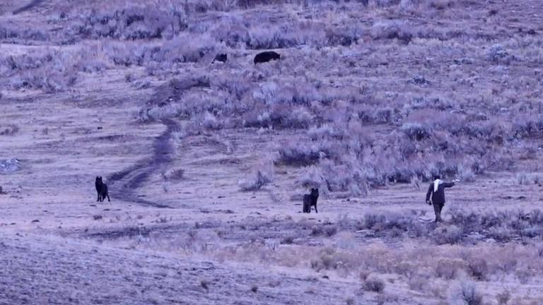 据悉这起事件发生在 10 月 6 日,现场视频最初被发布在一个名为“黄石国家公园:白痴入侵(Yellowstone National Park: Invasion of the Idiots)”的 Facebook 群组中。视频显示,一名围著白色围巾的男子主动靠近开阔地中的五只黑狼。起初,他后退了几步,但当狼群朝他奔来并似乎开始包围他时,他反而向前逼近,与几只狼靠得只剩几英尺,同时挥舞着手中的某个物品。